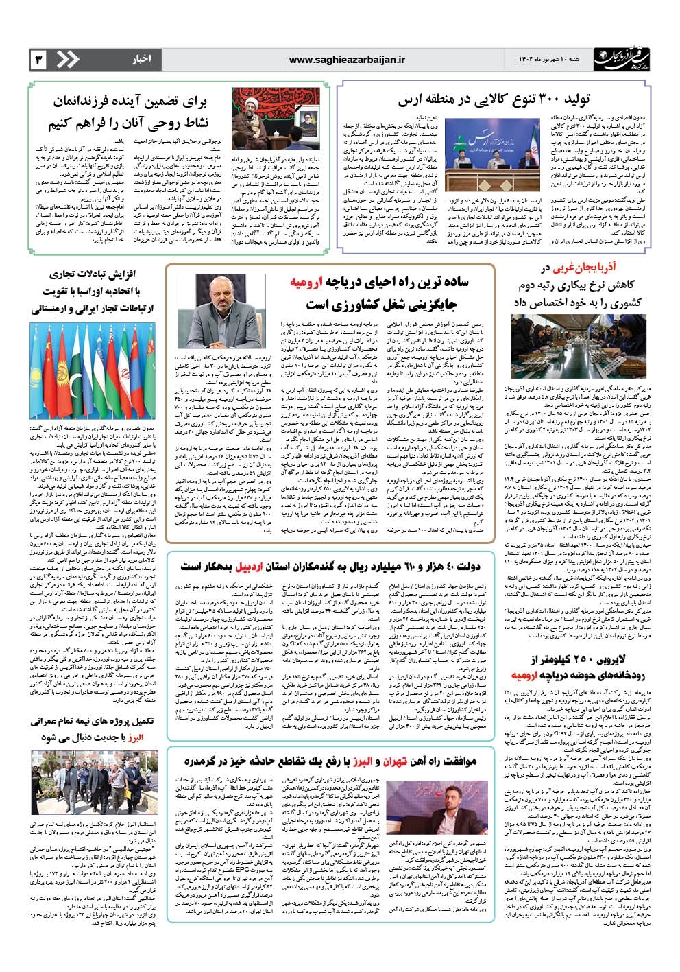 روزنامه ساقی آذربایجان/ چهارشنبه ۱۴ آبان ماه ۱۴۰۴